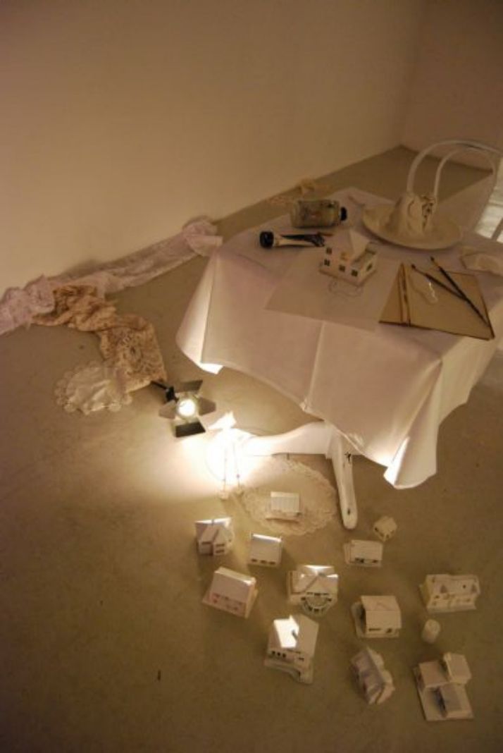 Il semblerait donc que cette table serve de lieu d’approvisionnement alimentaire mais elle est surtout devenu le point d’appui et de recherche d’un individu, (cahiers et croquis posées sur la table…) Un individu qui aurait donc décidé de se replier sur lui-même ; Une mise en recule qui semble ici nécessaire pour mieux comprendre et appréhender une situation inédite.