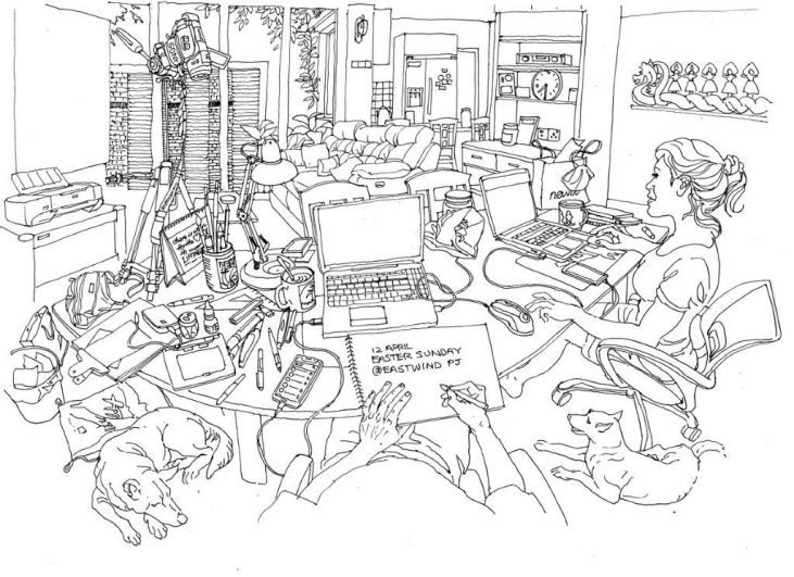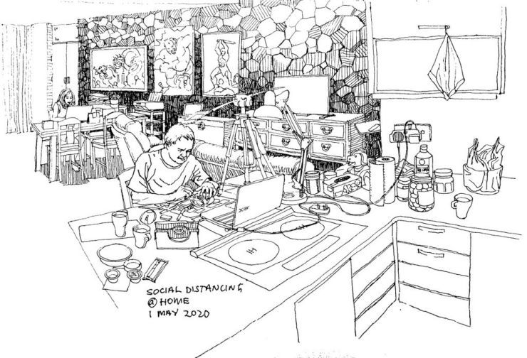 Pour un dessinateur invétéré qui s'est finalement échappé des confins de son confortable studio pour traquer les rues, s'inspirant de l'environnement urbain, après avoir travaillé pendant quatre décennies comme illustrateur seul à la maison, le confinement de Covid 19 est comme me renvoyer en "prison". Je suis en train de faire face à la nouvelle normalité. En dessinant sans cesse et en allant sur Internet.