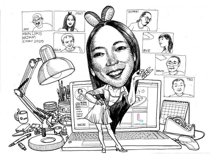 Le confinement a été levé. Le confinement a été réimposé. Puis levé. Puis réimposé. Signes que les choses ne seront plus jamais les mêmes. Bienvenue dans la nouvelle normalité. Ceci a été dessiné sur place. Entouré de mes outils, et d'un écran toujours changeant. Des escapades de verrouillage. J'ai participé au récent Artjam Lukis Lukis onlineCaricature avec des amis artistes qui ont tous dessiné Jolly Lollie, invité/modèle, depuis leur propre maison. Nous nous sommes bien amusés malgré quelques problèmes techniques et quelques contretemps.